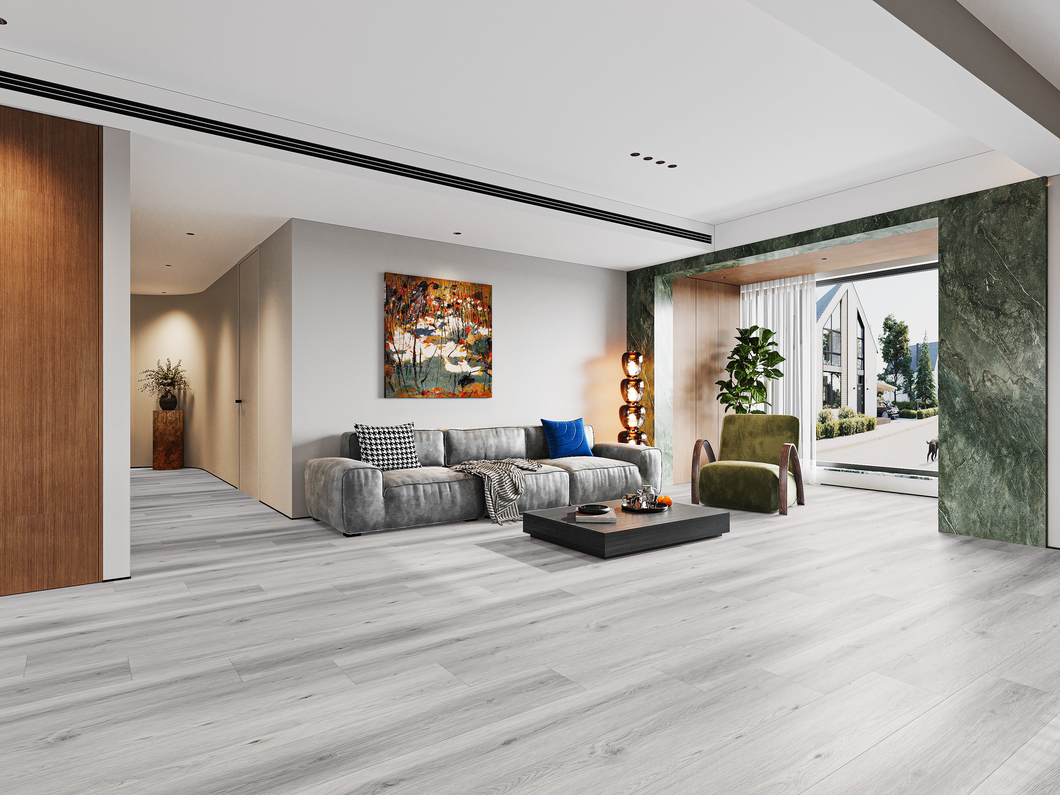 Experience the beauty and strength of Lennus 7mm Hybrid Flooring – Silver Pearl, engineered with advanced German technology for superior durability and style.